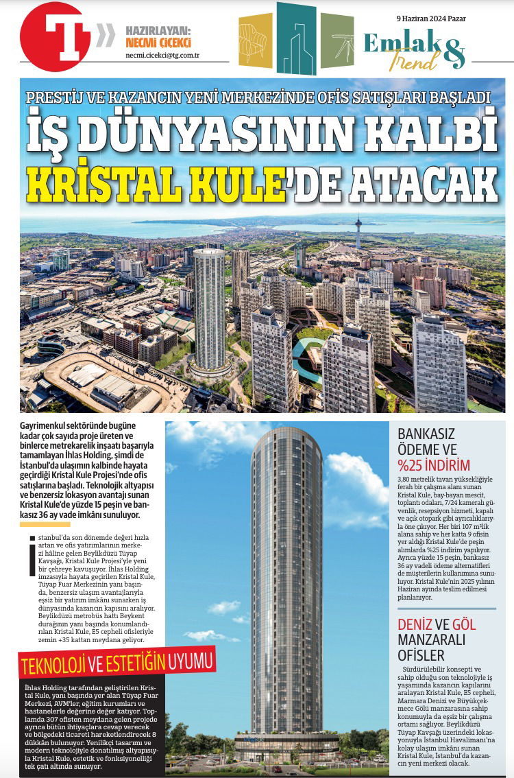 GENELPRESTİJ VE KAZANCIN YENİ MERKEZİ KRİSTAL KULE’DE OFİS SATIŞLARI BAŞLADI